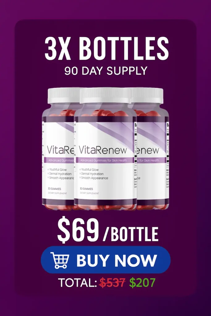 Adding to its advantage, VitaRenew uses well-known, skin-supporting ingredients in quality forms to support effective utilization, helping your body make the most of each gummy. The result is a more consistently hydrated feel and a progressively smoother look with regular use. Real-world feedback consistently points to improved suppleness, a more even-looking tone, and the confidence to move through the day feeling naturally radiant.